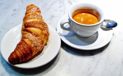 Un délicieux café expresso ou américain accompagné de sa viennoiserie fraîche du jour
